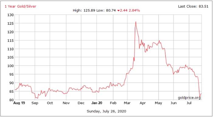 However, over the past few months, the gold-silver ratio has taken a steep dive, from a record 125:1 in mid-March, to the current 81:1. We were telling readers that silver was a buy long before the record of 125:1, positioned ourselves accordingly, and are now reaping the rewards.