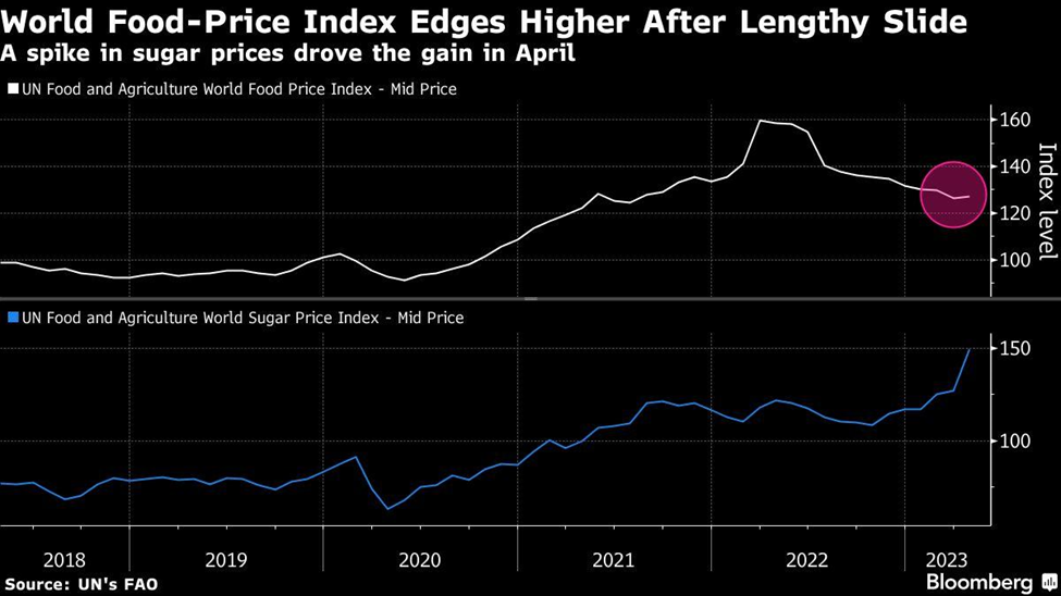 In April, the United Nations food agency’s world price index rose for the first time in a year, reflecting higher prices for sugar, meat and rice. Although the UN gauge is still 20% lower than the record set in March 2022, when Russia’s invasion of Ukraine disrupted grain exports, concerns over inflation never left.