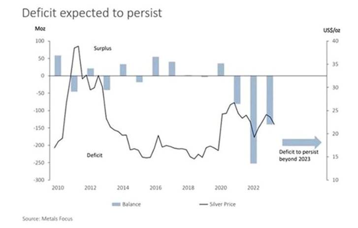 In fact it’s the fourth year in a row that the silver market would be in a structural supply deficit.