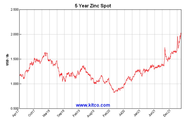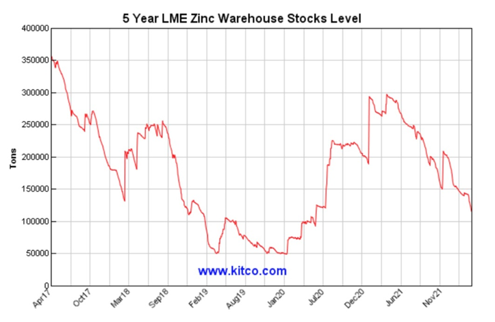 As of April 13, zinc inventories in LME-registered warehouses had fallen to their lowest since June 2020 at 115,600 tonnes.