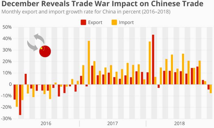 When economies falter, gold tends to well. The big news here is China, whose economy was booming at double-digits for most of the 2000s but is now creeping along at just 6.5% in fourth quarter 2018. This is a normal expectation from a country that moved very rapidly to becoming an export-driven economy, with a low-value currency, to a more diversified one now. However there are worrying signs in China about slack consumer spending on discretionary items like cars and phones – Chinese imports fell 7.6% in December after gaining 16.1% in 2017. Exports are also hurting, due to US tariffs on Chinese goods.