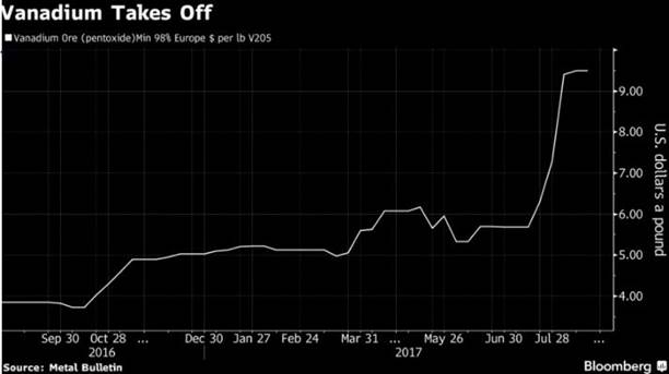In March and April of 2017, electricity produced from utility-scale renewable sources exceeded nuclear power generation in the United States for the first time since 1984. It’s also worth mentioning that besides v-flow batteries, vanadium has also begun to play a role in applications for electric and hybrid vehicles.