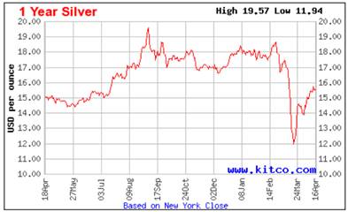 On April 14 spot gold hit a 7-year high of $1,718 an ounce, due to concerns over global growth, and as a wave of fiscal and monetary measures steered investors towards precious metals and away from assets denominated in paper currencies.
