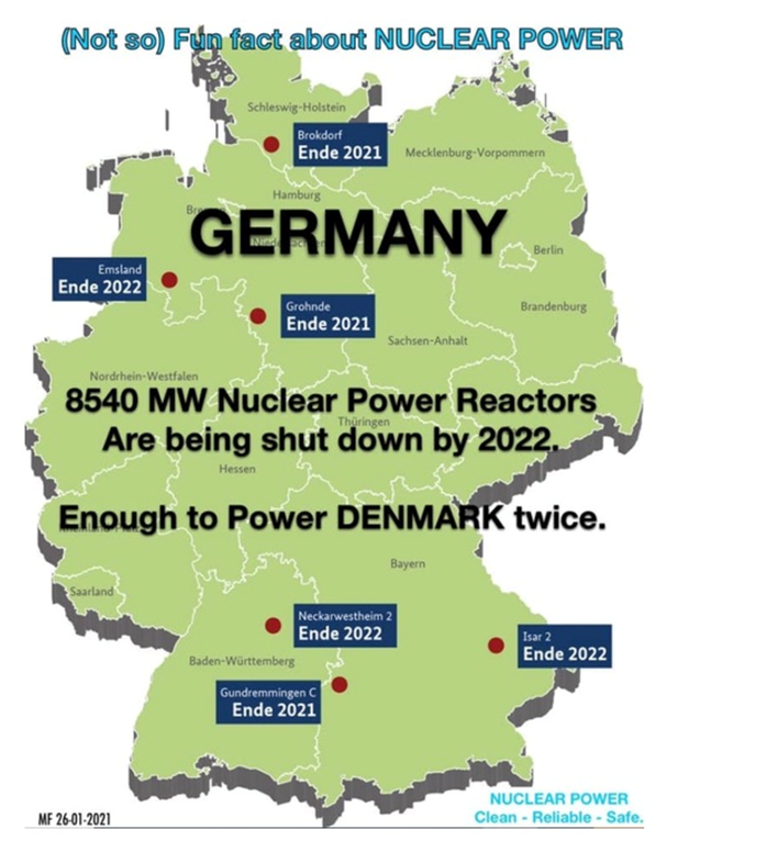 Then, playing populist politics and over-reacting to the partial meltdowns in Japan’s Fukushima Daiichi nuclear complex, Merkel’s government immediately shut down almost half of the country’s nuclear power. Germany, overnight, decided 40% of its nuclear power capacity would be eliminated, and removed 8,800 megawatts (MW) from the grid; the remaining 12,700 MW of nuclear-supplied electricity will be gone by 2022.