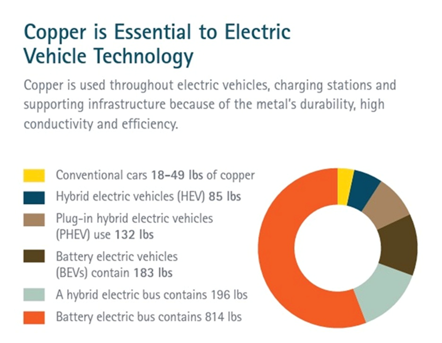 Along with the usual applications in construction wiring and plumbing, transportation, power transmission and communications, there is now an added demand for copper in electric vehicles and renewable energy systems.