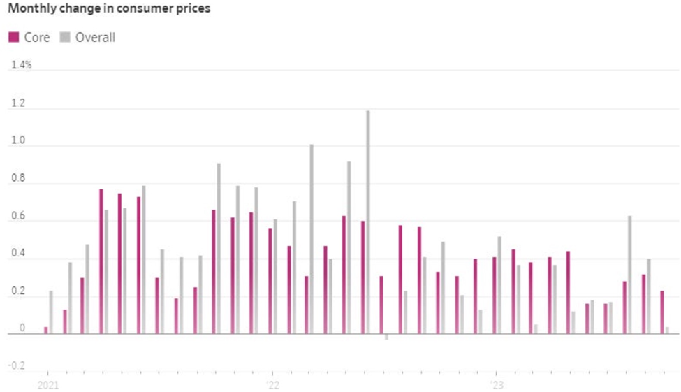 The latest data shows US inflation at 3.2%, a dramatic reduction since July, 2022, when prices were rising at 8% compared to a year earlier.
