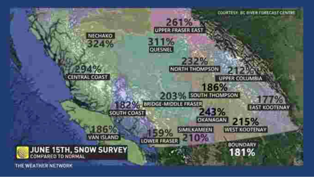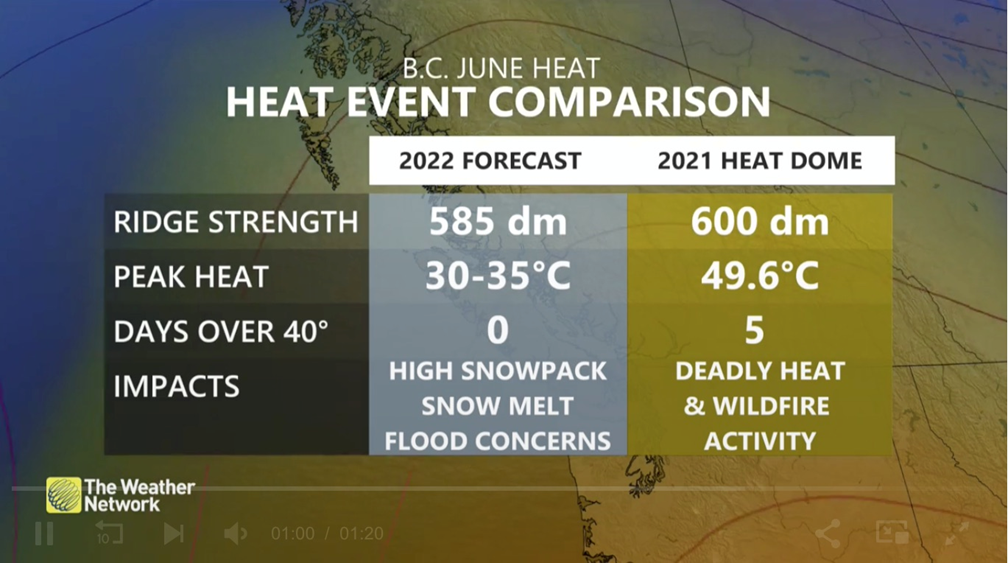 News-hour meteorologists have been warning for weeks that a sudden jag of hot weather would significantly increase the likelihood of flooding in BC, given that so much snow is still in the mountains.