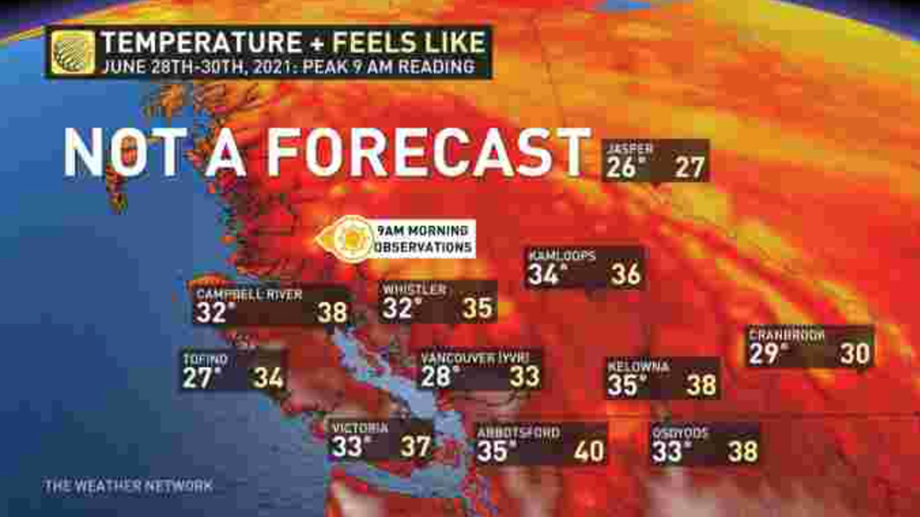 Meteorologists note, however, that the first heat wave of the summer will be nothing like the heat dome we experienced this time last year, which killed 619 people, mostly seniors lacking fans or air conditioning. Between June 28 and 30, 2021, 9 am readings showed temperatures across the province into the mid-30s, and even 40 in Abbotsford.