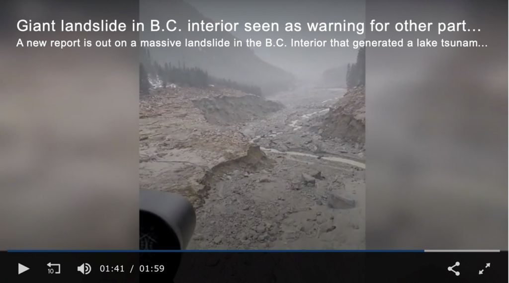 “Imagine a landslide with a mass equal to all of the automobiles in Canada travelling with a velocity of about 140 kilometres an hour when it runs into a large lake,” Marten Geertsema, lead author of a study on the slide, and adjunct professor at the University of Northern British Columbia (UNBC), described it in an interview with Global News.