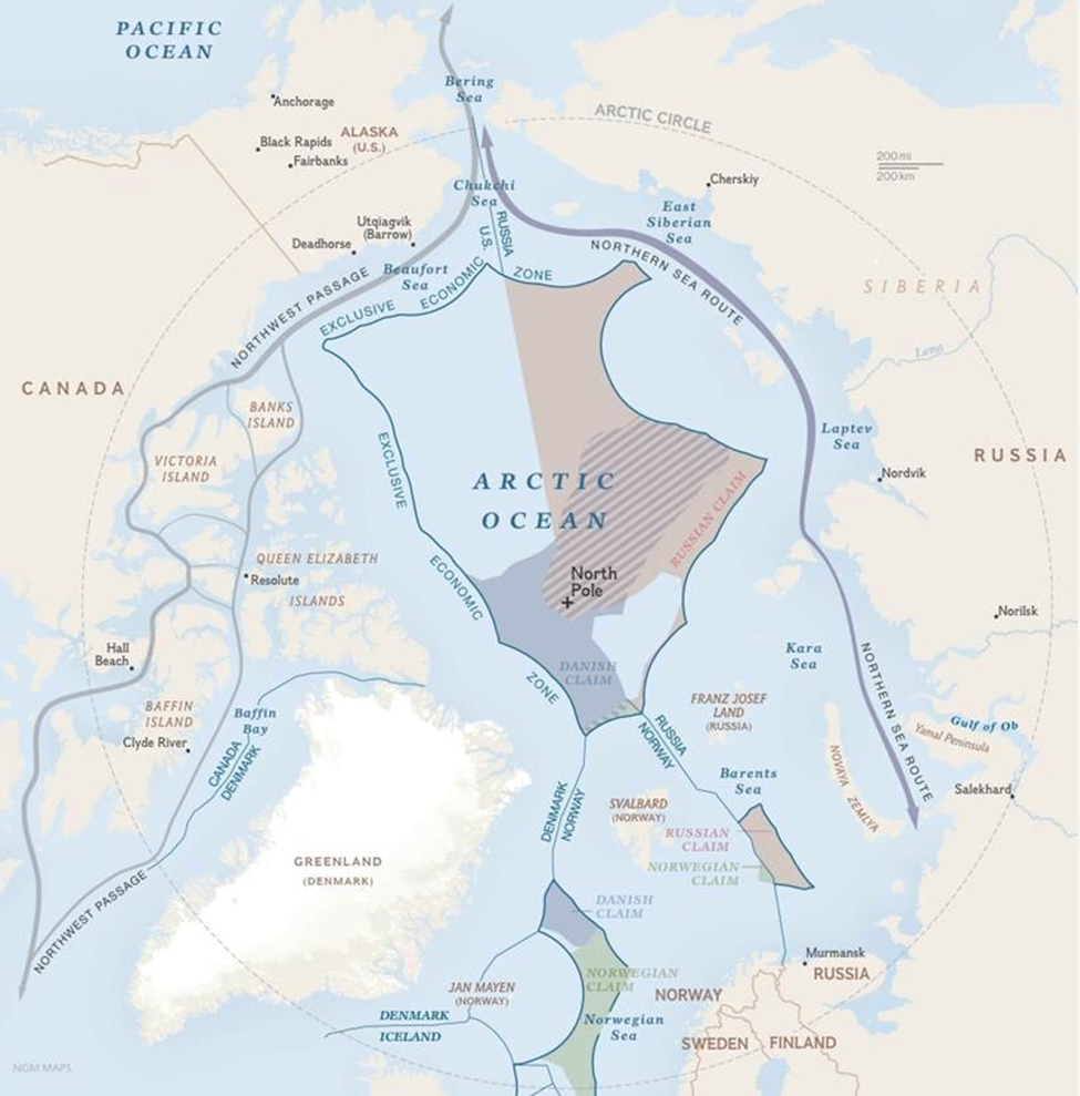 Russia’s status as a great power is largely contingent on what they do in the Arctic. Their economy is heavily dependent on exporting oil and gas, much of which comes from their Arctic territory. Their fleet of nuclear-armed submarines is based in Murmansk, above the Arctic Circle. And they see the Northern Sea Route (NSR), a shipping channel along the Siberian coast, as a potential revenue source as well as an area that needs to be protected from oil spills and controlled from a military security perspective.