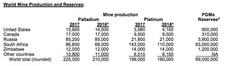 The USGS notes that about 104,000 tonnes of insitu PGEs could be developed throughout the world.