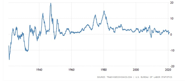 It didn’t happen. Despite three rounds of QE, and the accumulation of $4.5 trillion in Federal Reserve assets (bonds and mortgage-backed securities) between 2008 and 2014, inflation never went above 4%.