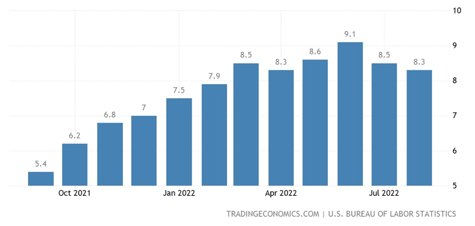 The latest (August) inflation readings showed the Consumer Price Index (CPI) running at +8.3% and the core CPI — growth of prices excluding food and energy — hitting 0.6% in August, double July’s pace.