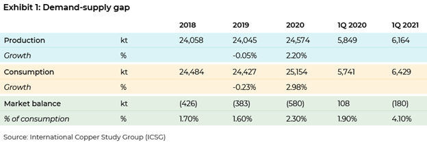 The Covid-19 pandemic has already had a notable impact on global copper production due to labor disruptions and mine shutdowns, resulting in copper mine supply 80,000 tonnes short compared with the previous year. Things are expected to return to normalcy this year, so 2020 will likely be just a slight bump on the road.