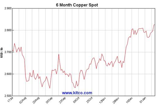 From its 52-week low of $2.51 a pound, copper has gained an impressive 13%, reaching an 8-month high of $2.86 a pound, on Monday, Jan. 13.
