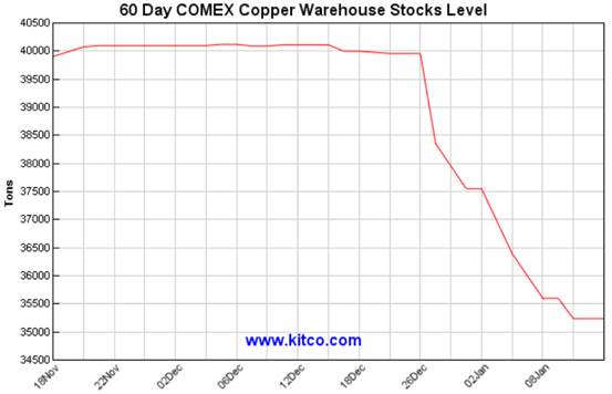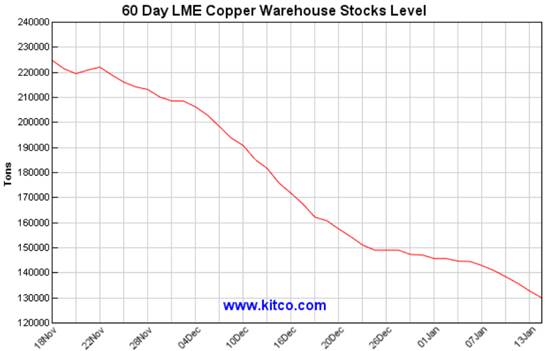 In New York, Shanghai and London warehouses, copper inventories have shrunk about 37% since July.