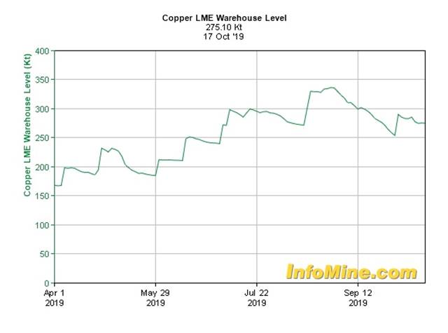 Lower prices are mostly due to the potential for demand destruction in China, which accounts for half of global copper consumption of around 24 million tonnes. Market observers are increasingly concerned that a lack of progress on trade talks will lead to less copper shipments to China and weaker industrial performance.