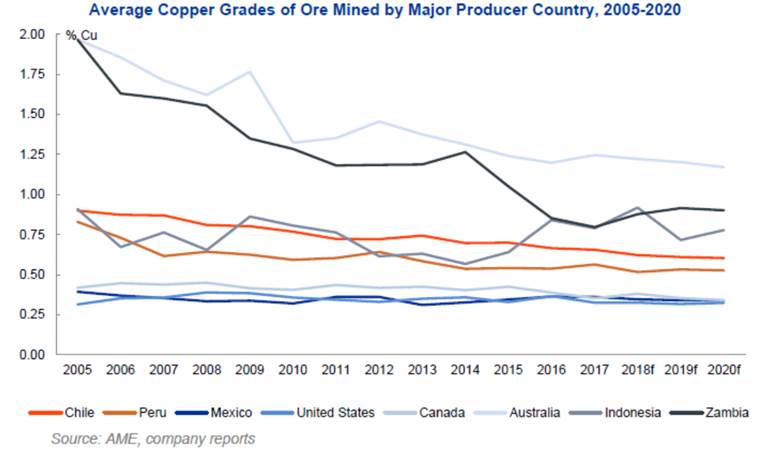 Miners are having to go further afield and dig deeper to find copper at the grades needed to economically produce copper products for end users.