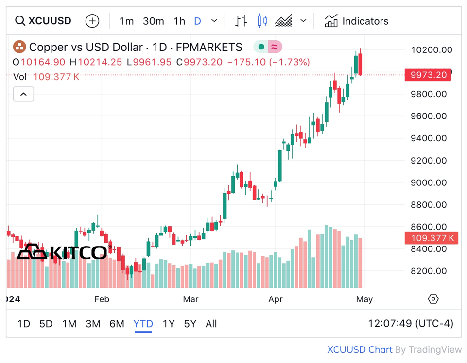On April 26 copper hit $10,000 a ton, setting a new two-year high a few days after BHP offered to buy Anglo American.