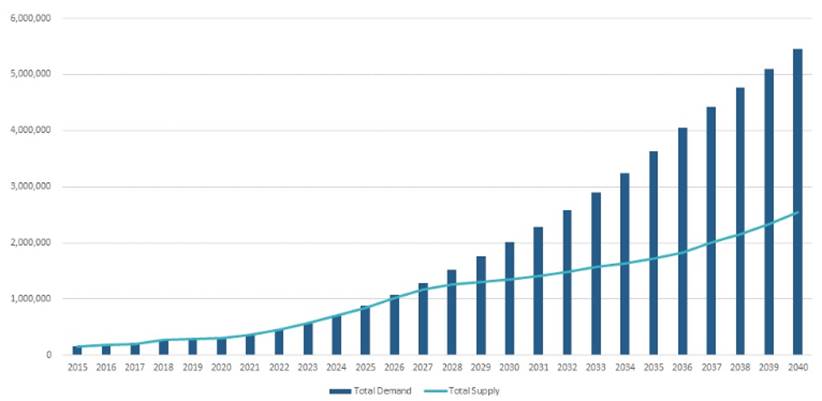 Current annual lithium (LCE) supply is around 360,000 tonnes. Total lithium demand of LCE is expected to reach over 1 million tonnes by 2025 or higher, states S&P Global Platts Analytics.