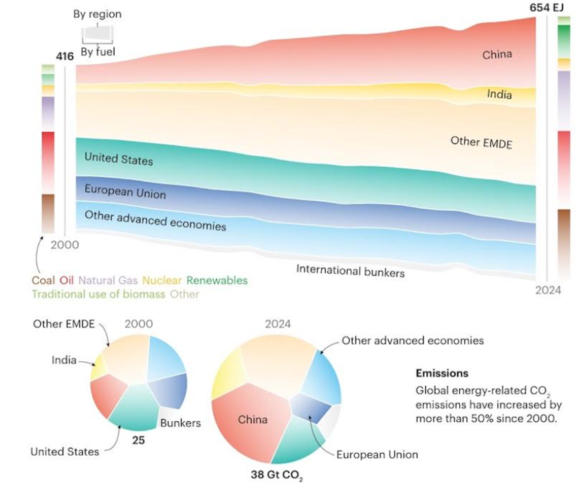 The graphic below shows global energy-related CO2 emissions have increased by more than 50% since 2000.