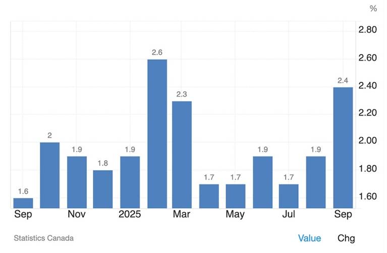 As the three charts below show, inflation over the past year has been on the rise in the US, Canada and Britain.