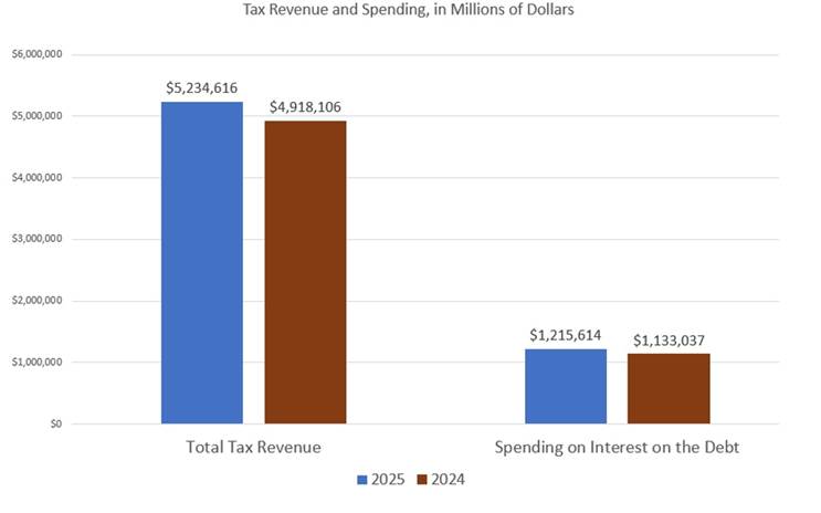 During the 2025 fiscal year, the US spent nearly one quarter of all tax revenue just on paying interest on the debt.