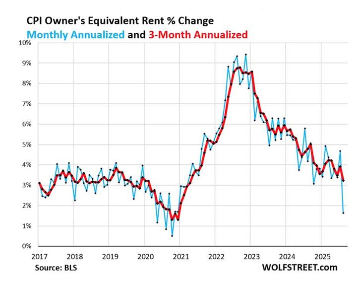 The publication on the same day headlined “something went awry at the BLS” (probably during the government shutdown — Rick) because a “massive outlier” in Owner’s Equivalent of Rent (OER) pushed down CPI, core CPI and core services CPI.