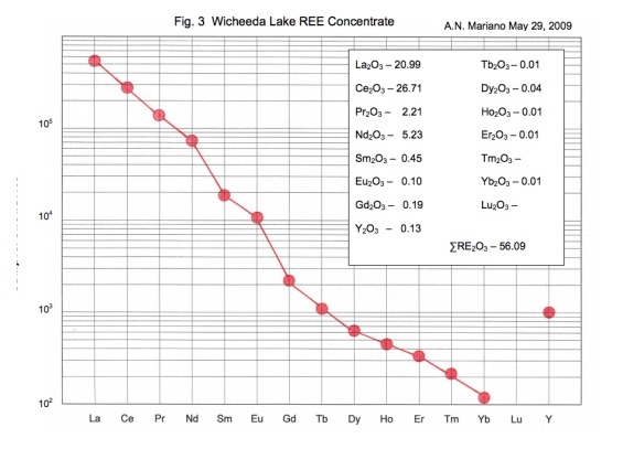 A 2009 study was designed to discover the ease of making a rare earth concentrate from a composite rock sample taken from Wicheeda carbonatite, based on three assay samples.