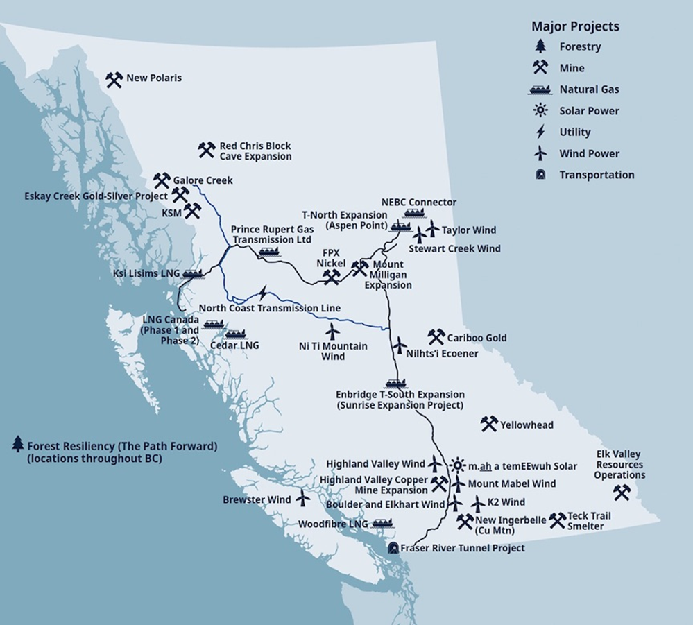 Again, sifting through the crud, what’s important is there are 18 priority BC projects, including four critical mineral mines: Eskay Creek being developed by Skeena Gold & Silver, and three mine expansion projects — Red Chris, Mt. Milligan and Highland Valley. All except the Highland Valley copper mine expansion are in progress. Teck Resources’ board recently approved the life-of-mine extension at Highland Valley.