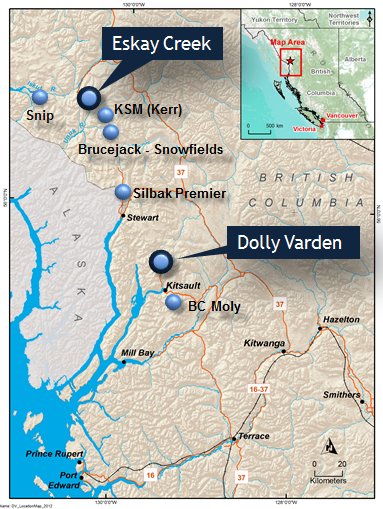 As for the Dolly Varden property, it is situated in the bottom corner of the Golden Triangle (see map below).