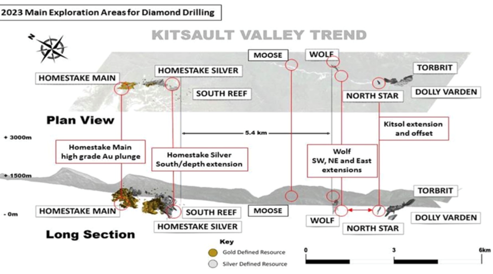 Two drill rigs are presently targeting the Wolf vein, and two are at the Kitsol vein. A fifth rig has been mobilized, thereby expanding the original 45,000m 2023 drill program to 55,000m. Over 70 drill holes have been completed to date this season.