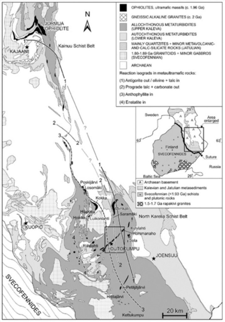 The world’s first bioheapleach project for nickel, and other battery metals, occurs just north of the Outokumpu District, at the Talvivarra mine, hosting mineralization containing nickel, copper, zinc and cobalt.