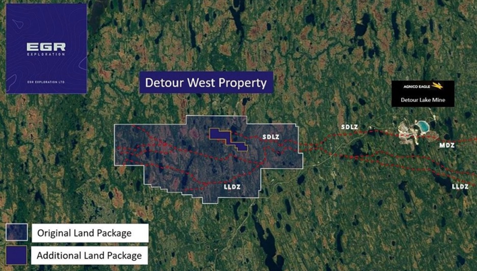 To maximize its chance of success, EGR has since increased its landholding and consolidated the entire 40,255-hectare Detour West project area, which is now 35 km long by 15 km wide.