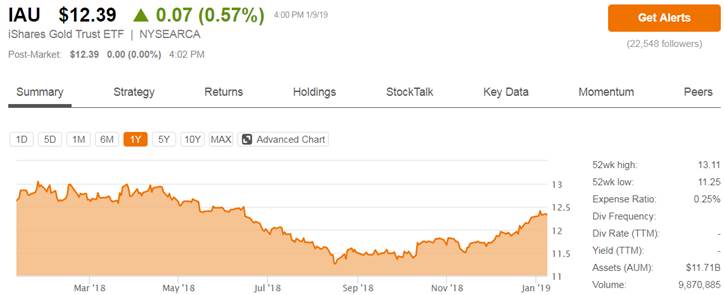 The gold price is up, but investors are also grabbing as much paper gold as they can. According to the World Gold Council, holdings of gold exchange-traded funds (ETFs) were up 3% in 2018, with December being the third straight months of net inflows (more gold ETFs bought than sold).