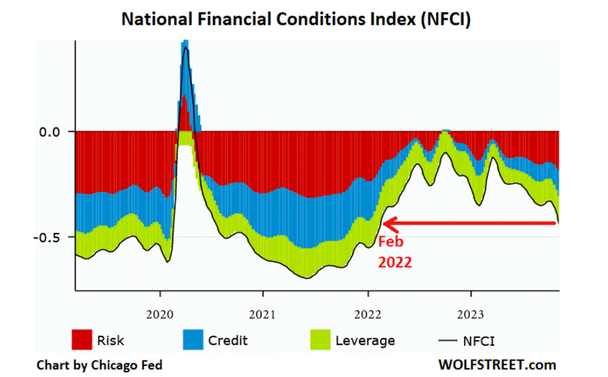 The Fed, the ECB, the BOC, the RBA, and the BOE have been facing the same issue: markets are not cooperating – markets are fighting them, financial conditions have gotten looser and thereby provide additional fuel for inflation, and the longer markets are doing this, the more they’re risking that rates will end up even higher for longer.