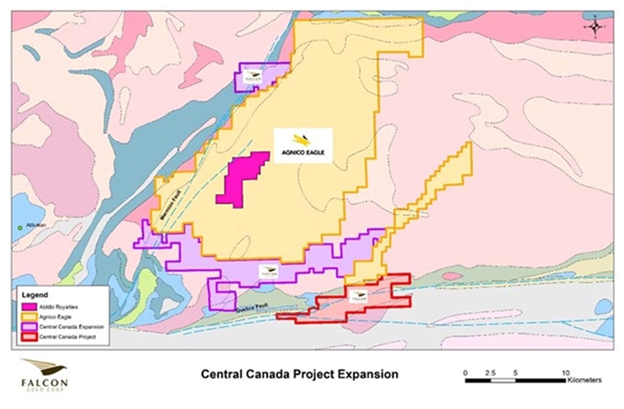 Falcon has “close-ology” in its favor at Central Canada too. With a total area of 10,392 hectares, Falcon has the largest land position in Ontario’s Atikokan gold camp — bested only by Agnico Eagle and its 32,070-hectare Hammond Reef exploration project. Hammond Reef has an estimated 3.3 million ounces of gold in reserves and 2.3Moz in measured and indicated.