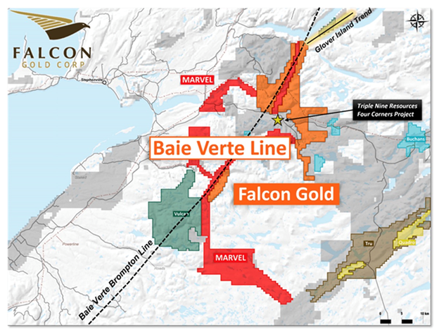 With the Baie Verte acquisition, Falcon now controls a large swath of mineralization for a distance of between 10 and 15 kilometers, including a 300-meter-long identified gold structure.