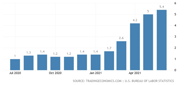 The result of these two forces acting together, is bound to create inflation, which has climbed to 5.4% in June.