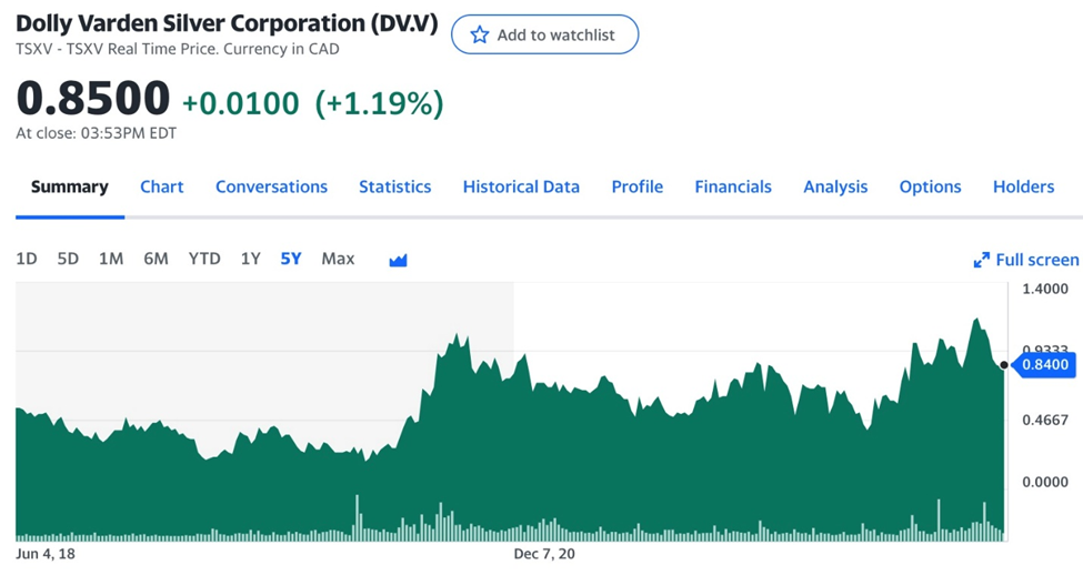 It’s tough to get the market’s attention these days, but Dolly Varden is one of the few junior resource companies to have done so. From just 36 cents a share at the end of September, 2022, DV’s stock price more than tripled to a five-year high of $1.23/sh on April 10, 2023. A pullback to around $0.85 presents a good entry point for shareholders wanting to capitalize on another strong set of drill results.