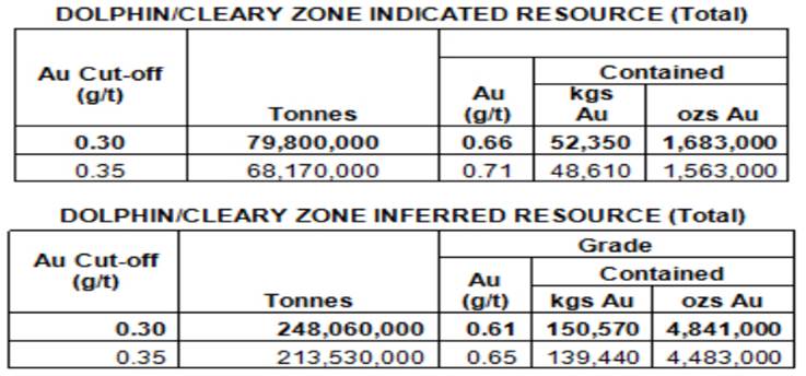 Dolphin Zone Inferred Resource within Conceptual Pit