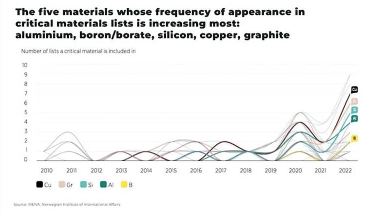Rare earth elements also ranked high on the list, including samarium, terbium and dysprosium needed for permanent magnets, motors, EVs and wind turbines.