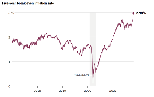 A key measure of bond market expectations for inflation over the coming decade recently rose to its highest since 2006, which is keeping Treasury yields in check. This is important as historically Fed officials tend to monitor signals in the bond market when deciding what to do with interest rates.