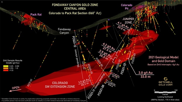 Another hole, FC21-13, is currently being drilled into the Colorado SW zone, where Getchell is hoping to confirm the continuity of the mineralization to surface.