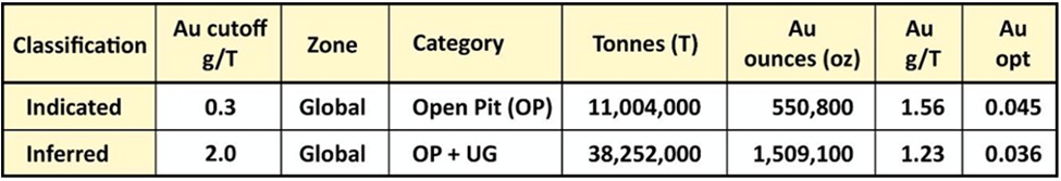 Partway through the 2022 drill program, an open-pit model mineral resource estimate was commissioned and published (see below).
