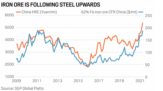 On the other hand, China is also trying to rein in its world-leading steel supply. It views the supply boom during the coronavirus crisis as a contributing factor to the nation’s rising carbon emissions, in contrast to other big economies.