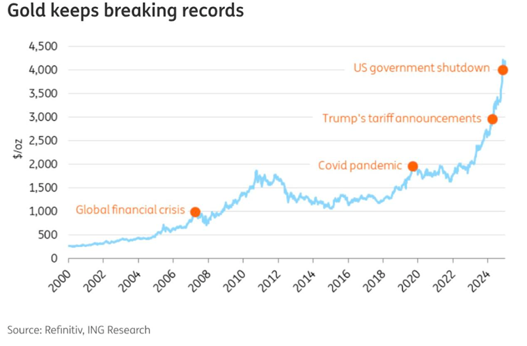 The ING piece states that Q3 2025 marked a record-high for gold-backed exchange-traded-fund (ETF) inflows, with gold ETF investors adding 222 tonnes, coming close to the November 2020 all-time high.