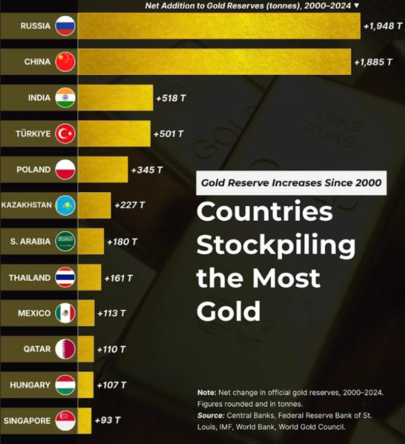 Gulf states like Qatar and Saudi Arabia are also increasing gold holdings.