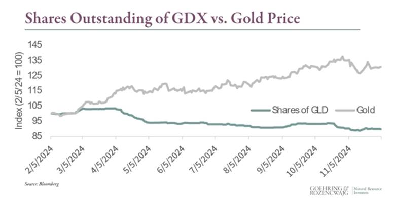 Wall Street commodities investment firm Goehring & Rozencwajg picked up on this theme of Western investors returning to the gold market. In a Q3 2024 commentary, G&R stated that, while central bank buying set the stage for gold’s recent rally, “the return of Western investors could amplify the narrative.”
