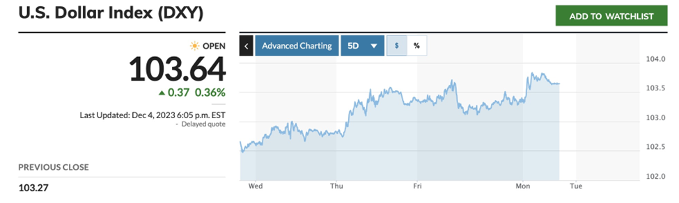 The Fed could still raise rates once or twice before it believes it has truly slain the inflation dragon. Or it could keep its finger on pause for several more months. A hawkish member of the Fed’s board of governors has raised the possibility that the Fed could decide to cut its benchmark interest rate as early as spring if inflation keeps declining steadily. Obviously, that would put downward pressure on the US dollar and upward pressure on the commodities that are priced in USD.